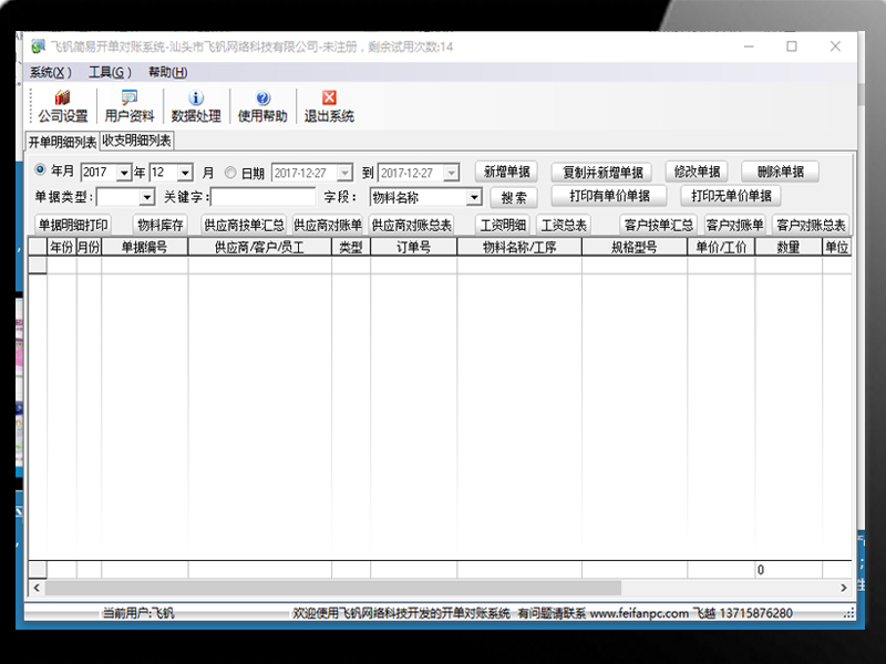 功能描述:可以记录送货记录,员工计件记录,供应商送料记录,外加工发料记录,打印每个月各供应商,各客户的汇总,每个月的应收应付款,现金流水账!
